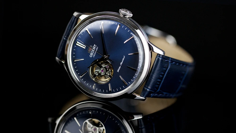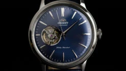 The Bambino Open-heart is one of Orient’s first skeleton collections featuring the latest movement of the house: the F6T22 caliber.
