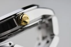 The first, which is eye-catching, is most probably the lack of opening at 3 o’clock which made visible the stem of the crown and the removal of the triangular sign “sapphire glass” and the inscription “Water Resist 50m“.