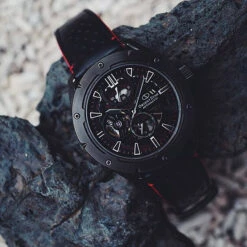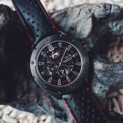 At 12 o’clock, you’ll enjoy a power reserve complication and at 6 o’clock, there is a small second indicator offering a precise indication of the time remaining into the movement to operate without new energy input.