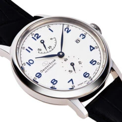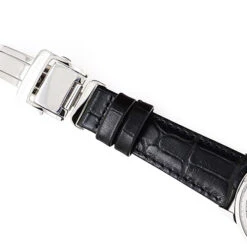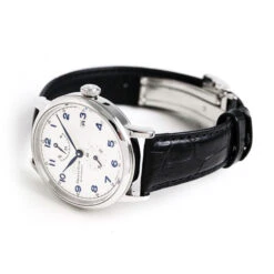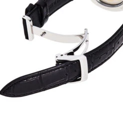 Sapphire crystal, refined hands, power reserve indicator and date at 3 o’clock fit together here with elegance and perfection. Its white dial is matched with a brown bracelet with care.