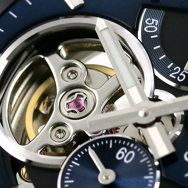 This semi-skeleton has 4 details allowing it to definitely belong to the high-end category of automatic timepieces: