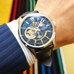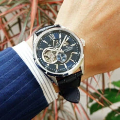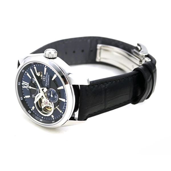 The Orient Star Modern Skeleton is cleverly decorated with a distinguished open-heart at 9 o’clock, offering a deep exposure to the heart of the watch and its mechanism. Each beat is thus visible in detail, giving this timepiece this singularity so appreciated …