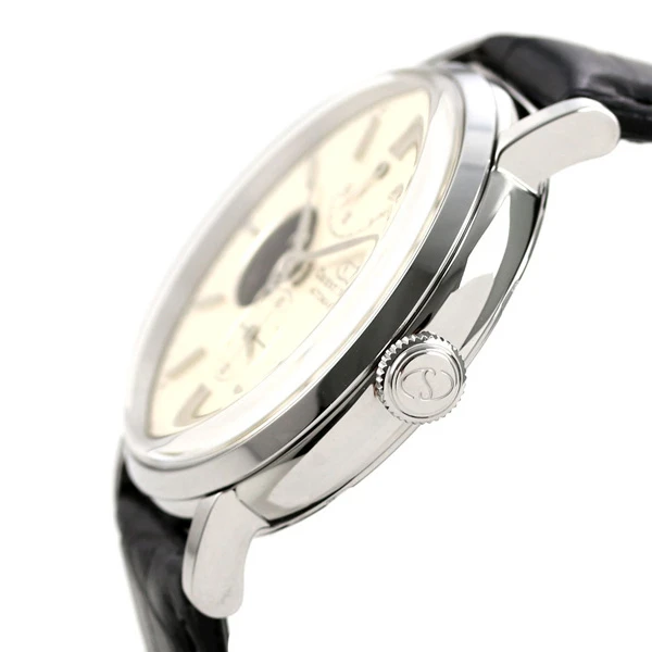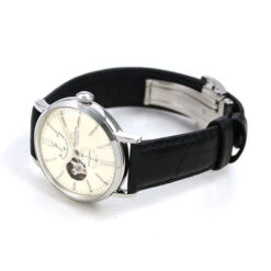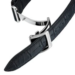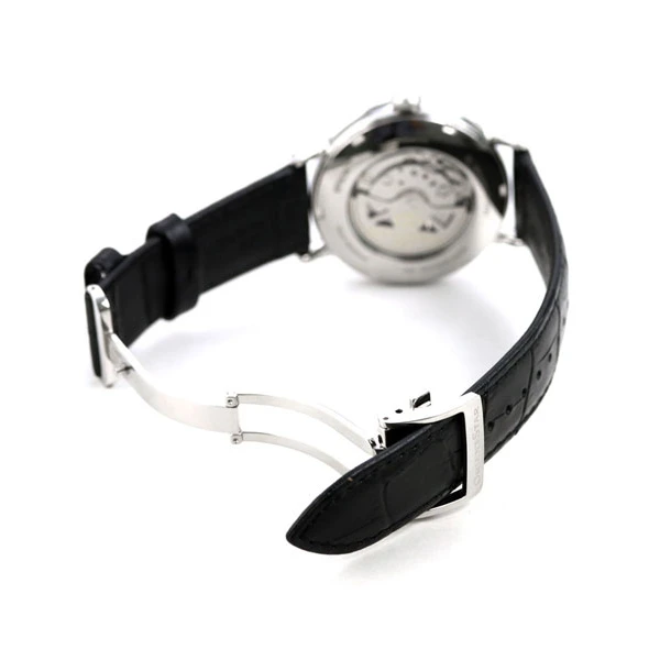 Sapphire crystal, refined hands, power reserve indicator and date at 3 o’clock nestle here with elegance and perfection. Its white dial is matched with a black bracelet with care.