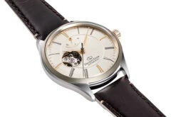 The Orient Star Open Heart is cleverly decorated with a distinguished open at 9 o’clock offering deep exposure to the heart of the watch and its mechanism. Each beat is thus visible in detail, giving this timepiece this singularity so appreciated …