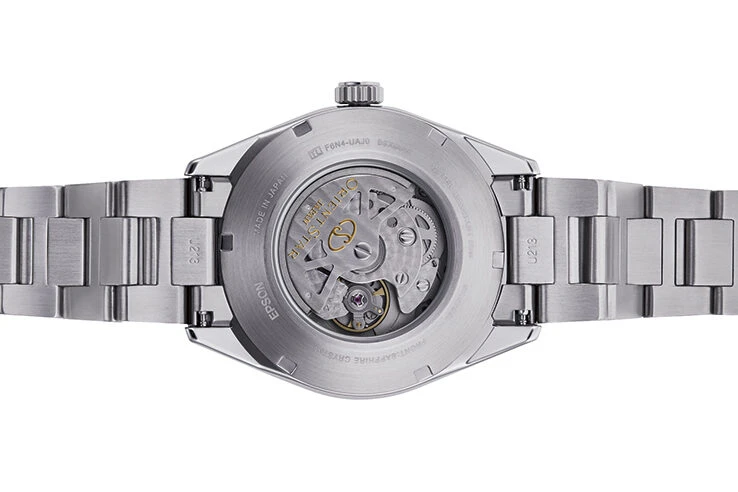 On the back of the watch, the movement is revealed every second revealing oscillations of the pendulum. This mechanical theater is fully visible thanks to the transparent caseback, specially designed in antireflective coating sapphire glass by Orient Star.