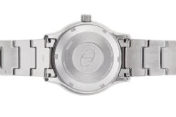 On the back of the watch, the movement is revealed every second revealing oscillations of the pendulum. This mechanical theater is fully visible thanks to the transparent caseback, specially designed in antireflective coating sapphire glass by Orient Star.