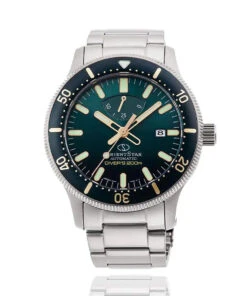 Needless to mention it last, what offers a charm to this watch is probably this green dial, neither too dark nor too light, perfectly matching the stainless strap, topstitched with white.