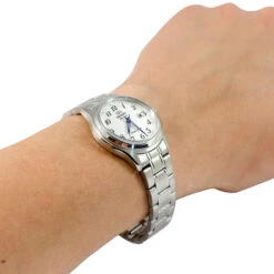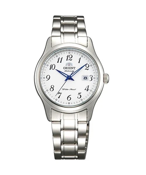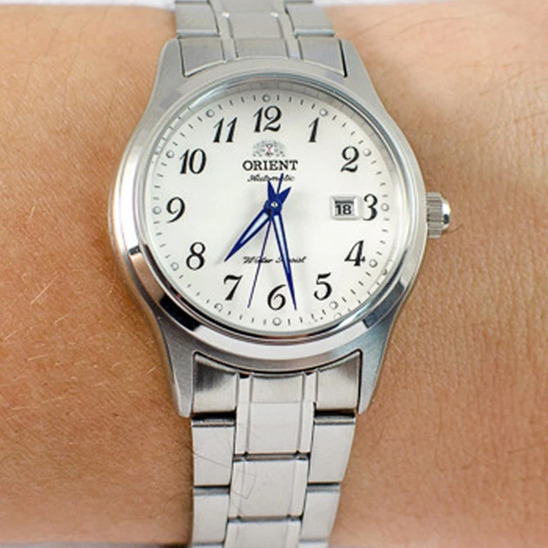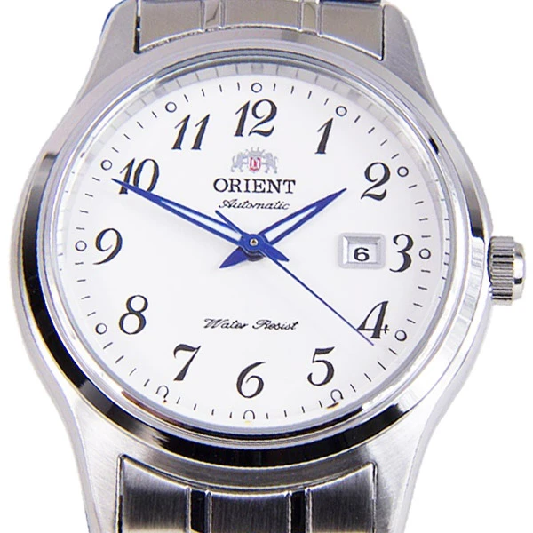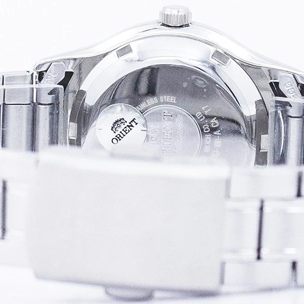 Featuring a Arabic numerals, the dial of this Orient Charlene is enhanced by two bluish hands, which contrast the gray of the indexes and the white dial.