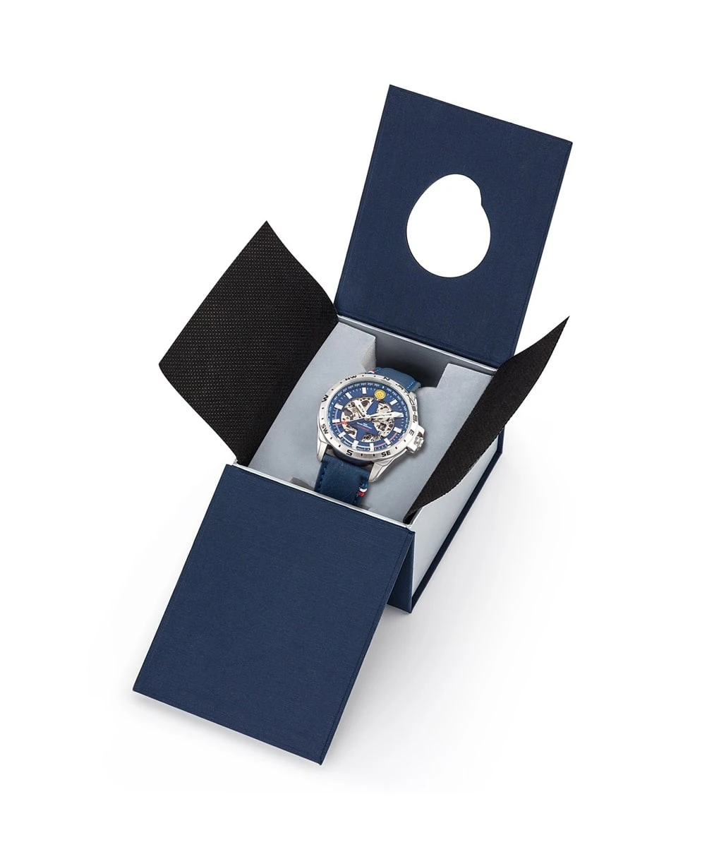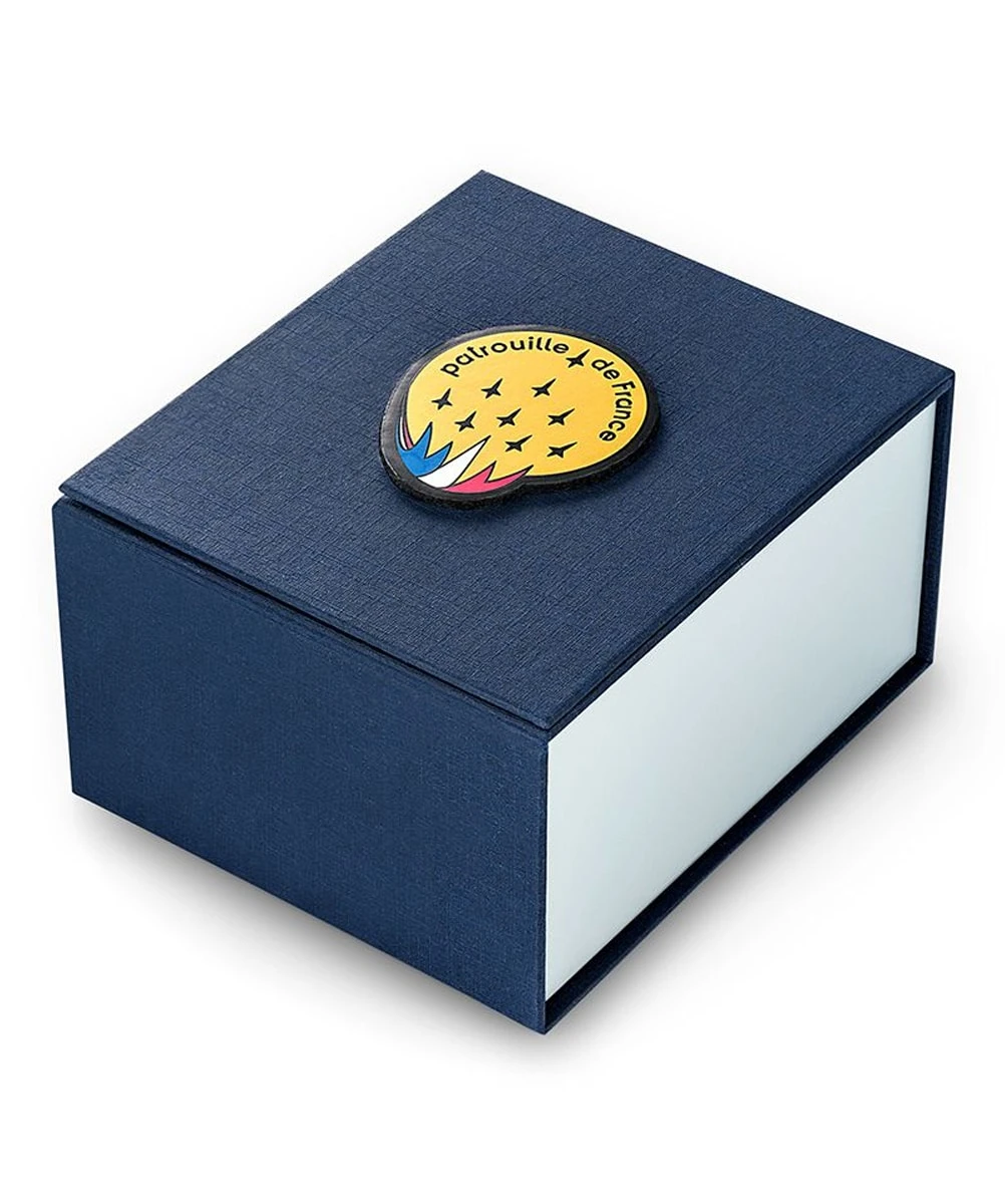 The leather strap, engraved with the iconic Patrouille de France logo, adds a touch of sophistication to this watch. Comfortable to wear every day.