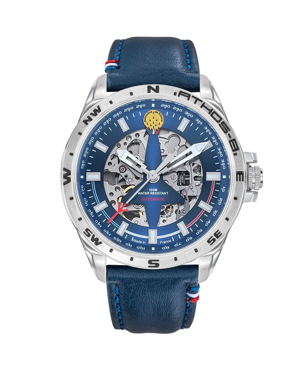 The Patrouille de France Athos 8 watch, bearing the reference A8-100ED-668131, embodies elegance and precision. Inspired by the excellence of the famous French acrobatic squadron, this watch is a tribute to aerial performance and team spirit.