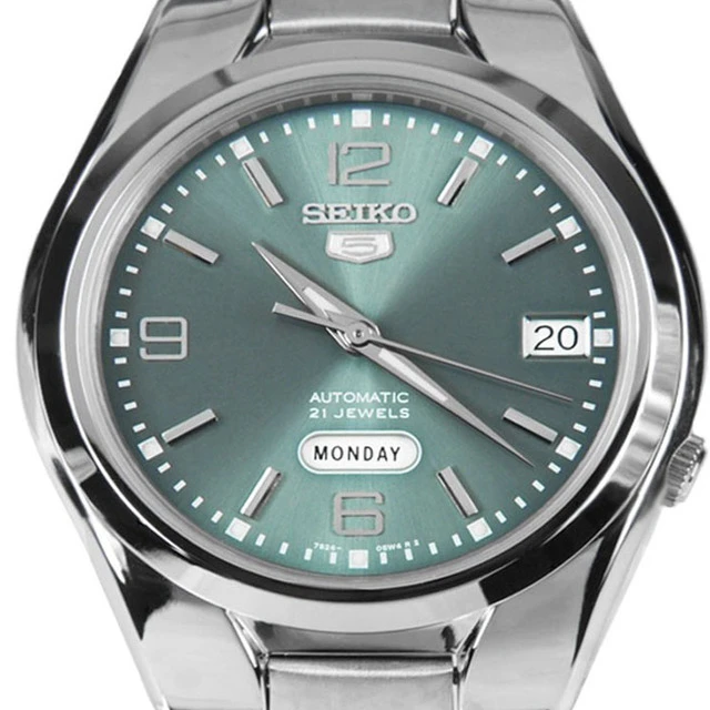 The green dial reflects the light with a charm, the small diameter of 38 mm allows the watch to dress the majority of male wrists with incredible ease and finally, we find in this SNK621K1 all that one could ask for an automatic watch!