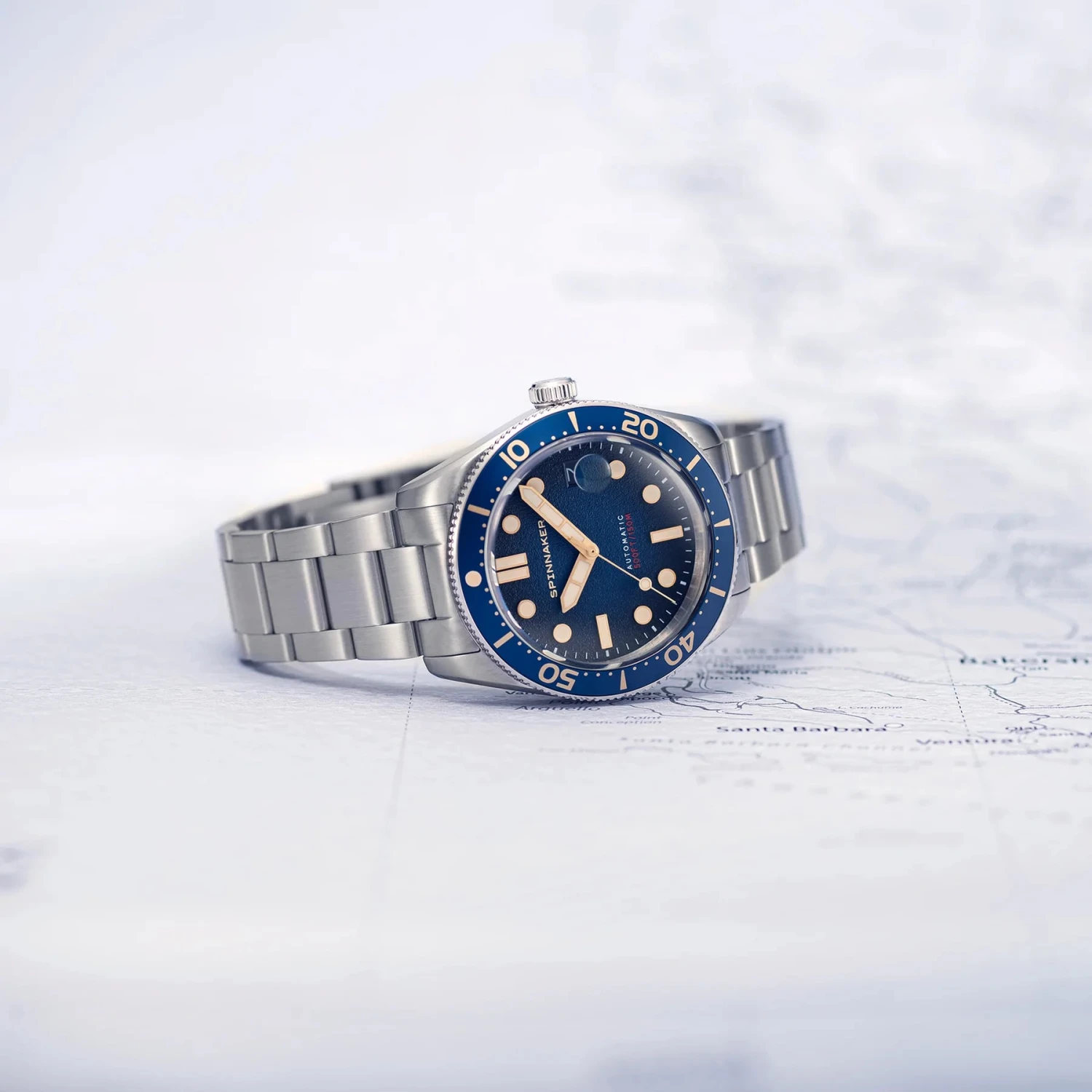 Dressed in a water resistant stainless steel strap and stitched at the ends, this diver allows a successful underwater exploration.