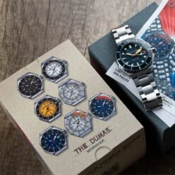 Inspired by the shapes and designs of the 1970s watches, the Dumas represents a more muscular form in the design of diving watches. Taking its name from the famous diving pioneer, “Frédéric Dumas”, the watch evokes a capsule of diving watches specifically designed to be functional and practical in their role as diving instruments.