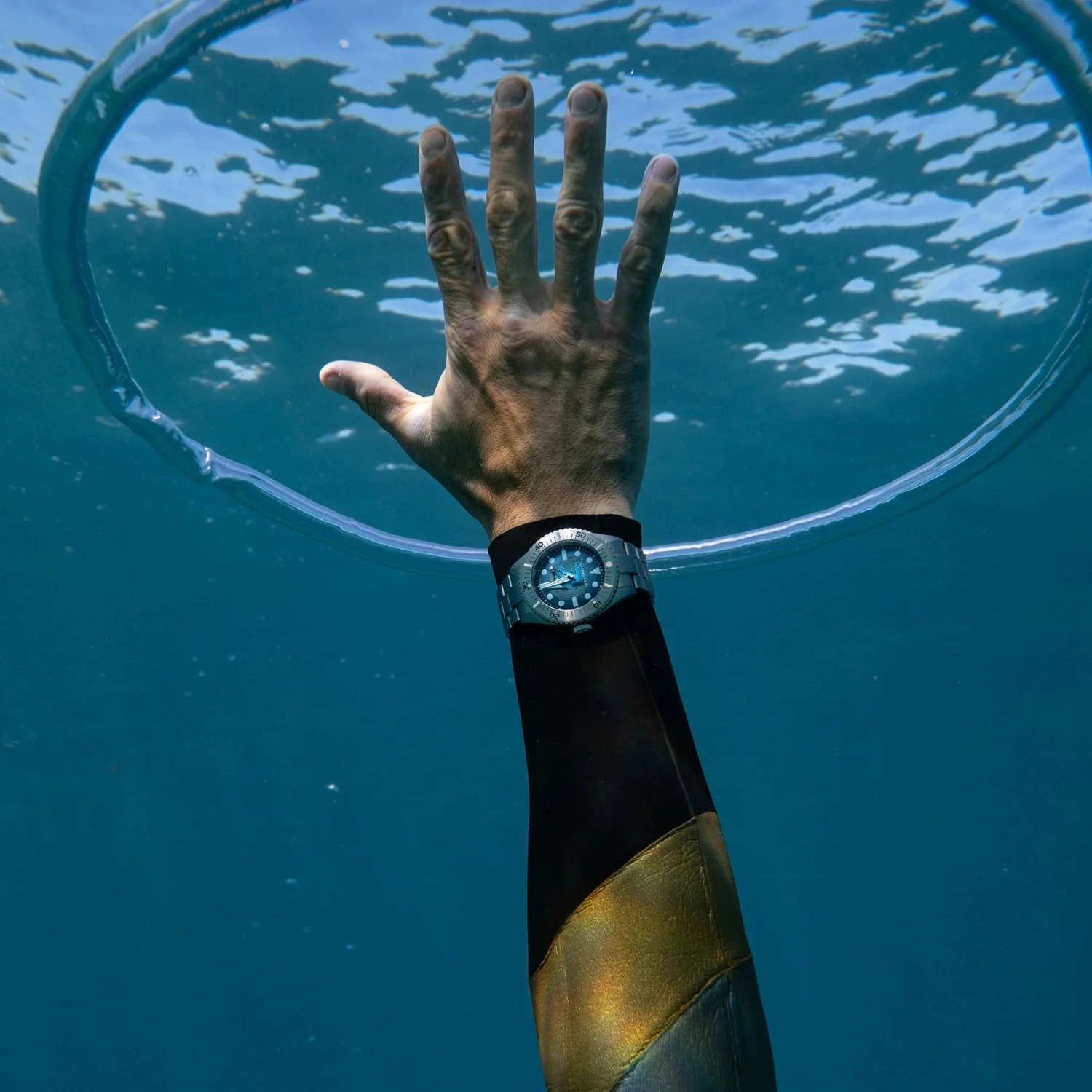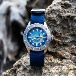 Dressed in a water resistant leather strap and stitched at the ends, this diver allows a successful underwater exploration. For a lighter and more casual look, an additional Nato interchangeable bracelet is included in the box. This can be installed by means of a spring bar, a tool also included in the box; for the pleasure of watchmakers.