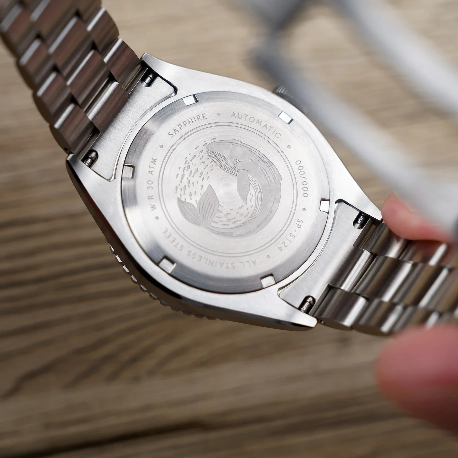 The SP-5124 Series is the 4th addition to the Vintage Diver Spinnaker range. Made of 316L marine grade stainless steel, this Spence case is corrosion resistant thanks to its low carbon structure.