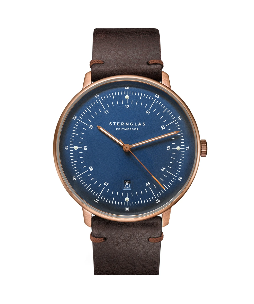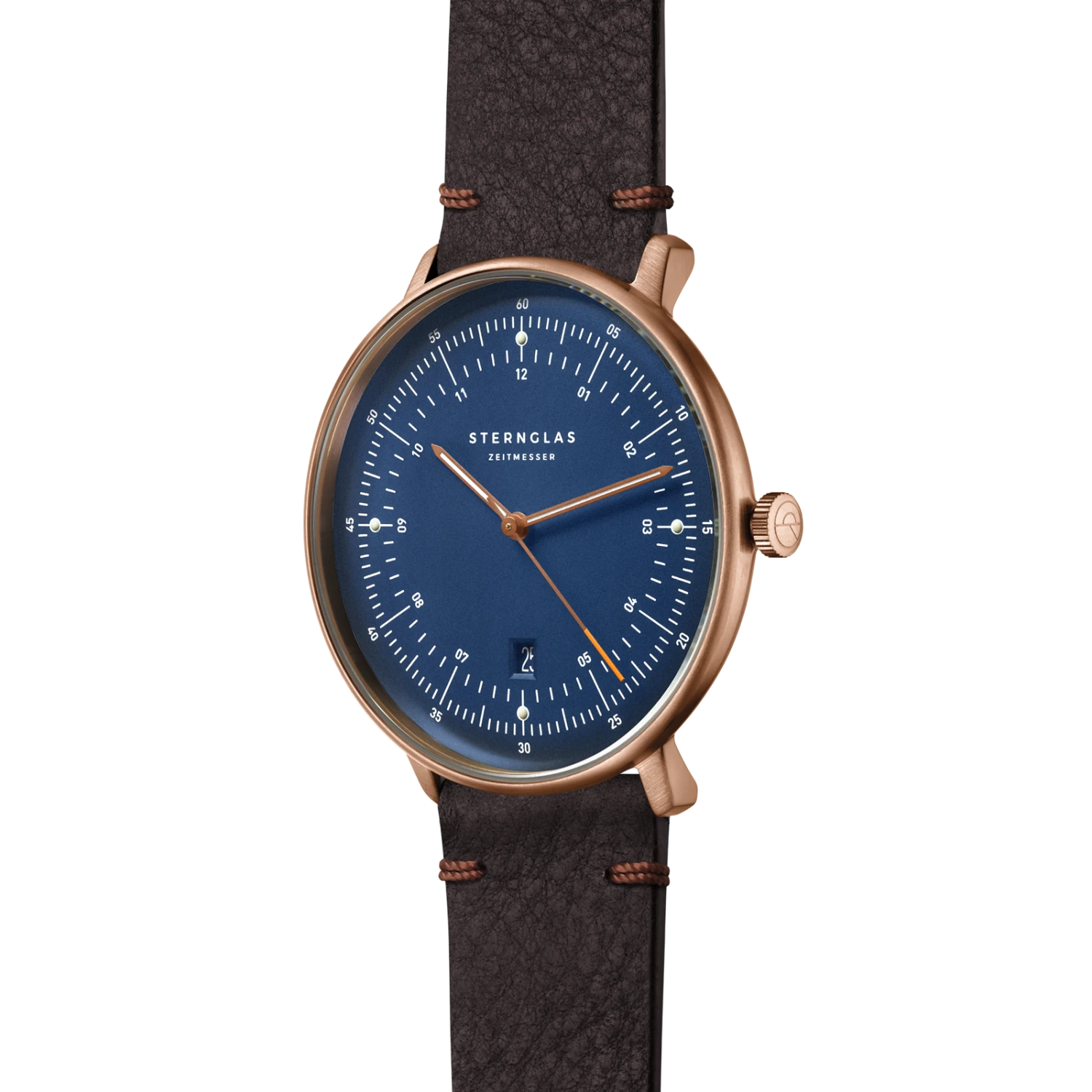 The Sternglas Hamburg Vintage Cognac S02-NAR19-VI17 is an elegant and sophisticated wristwatch that seamlessly blends classic design with modern functionality. This timepiece is a true testament to STERNGLAS’s commitment to precision, quality, and style.