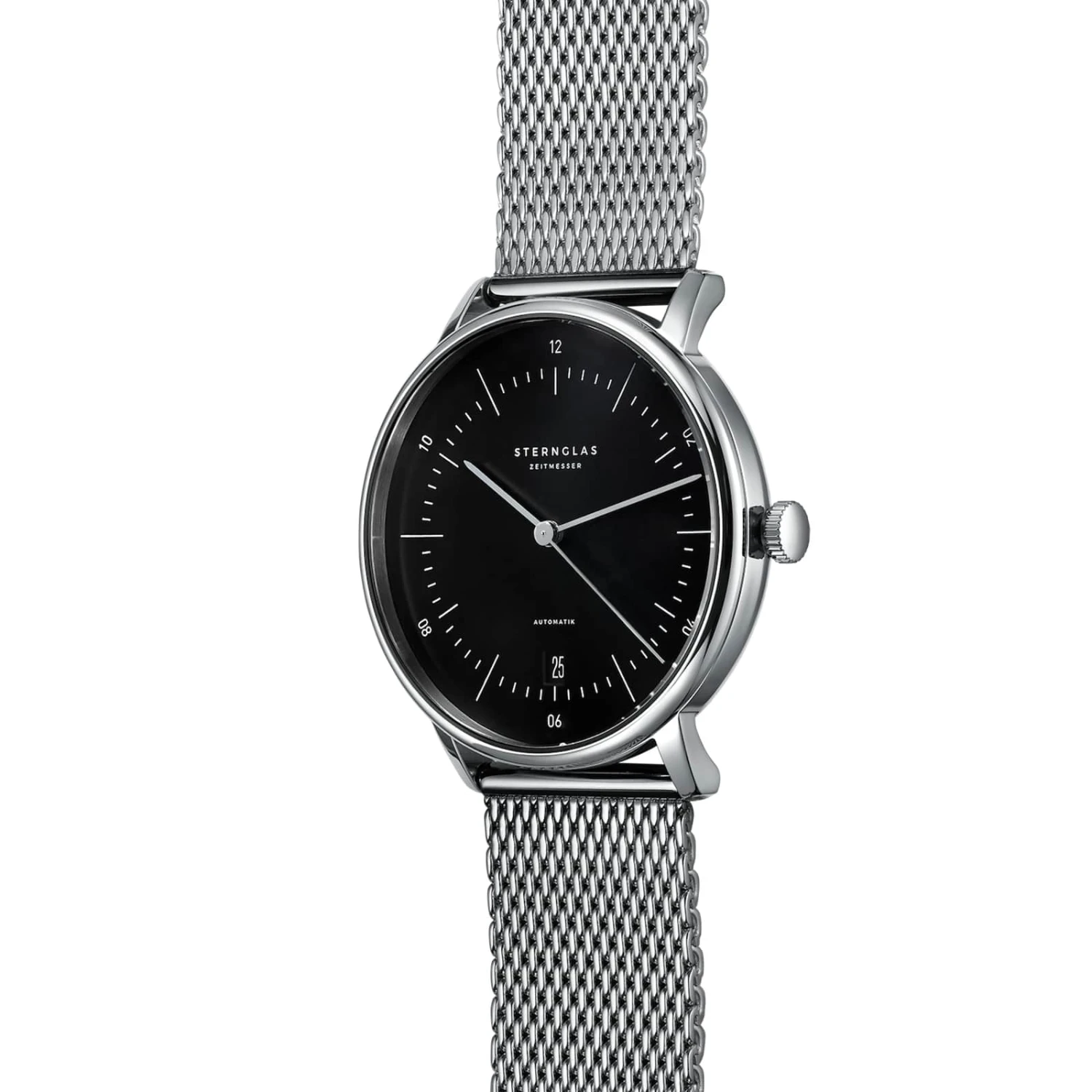 Sternglas Naos Automatic Black Silver Milanaise S02-NA03-MI04