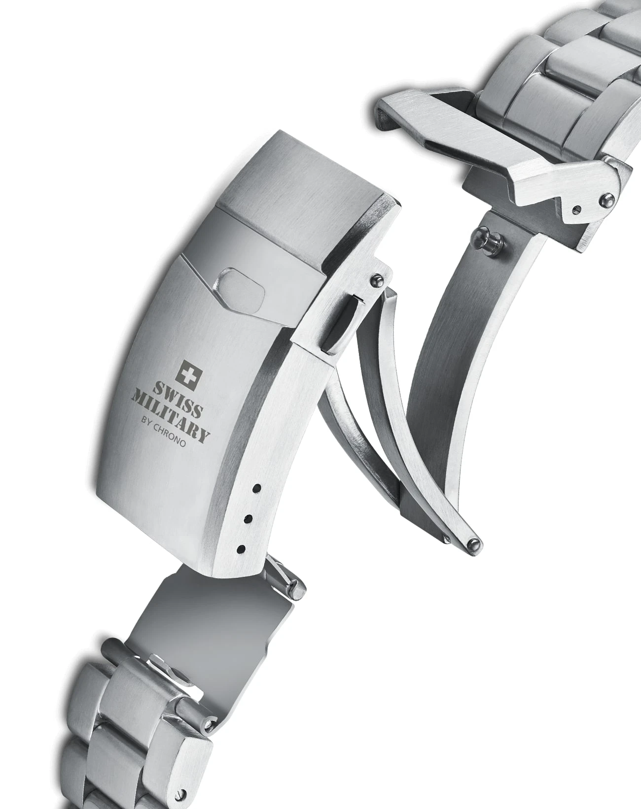This professional dive watch is made to withstand water-pressure up to a depth of 1000M. However, this impressive Swiss Made men’s watch is not only a perfect match for your outdoor activities, it is also a reliable partner for everyday life. What’s more, this timepiece is fully packed with high-quality features fit for a truly rugged Swiss Made sports watch