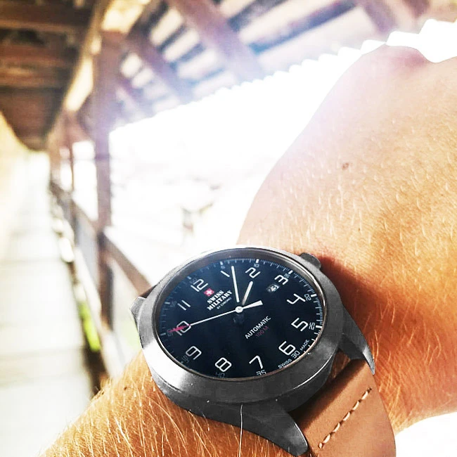 Also, the Swiss Military logo can be found in various places, including the back of the bracelet . Finally, the screwed crown located at 3 o’clock, with its perfect shape, takes up the hexagonal features of the case. allows the manual winding of the watch as well as its time setting. Let’s now discover the engine that makes this timepiece beat…