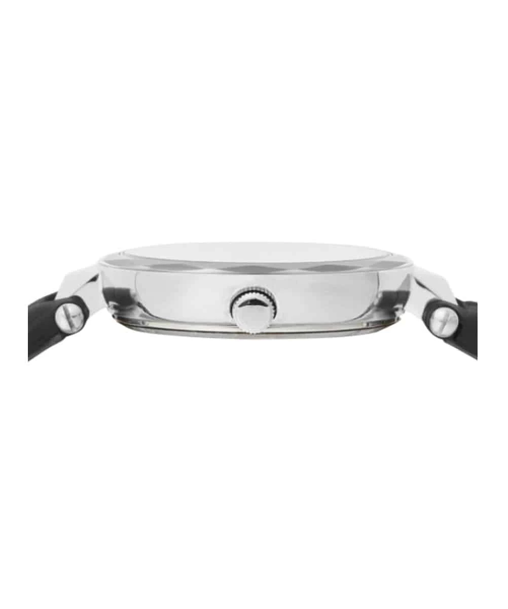 The silver found on the dial and the black strap here represents the color of the watch.