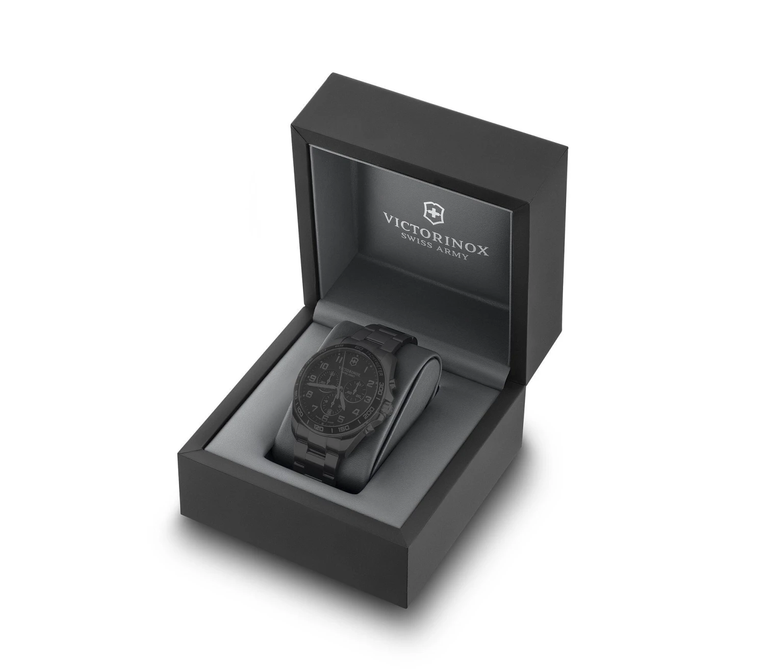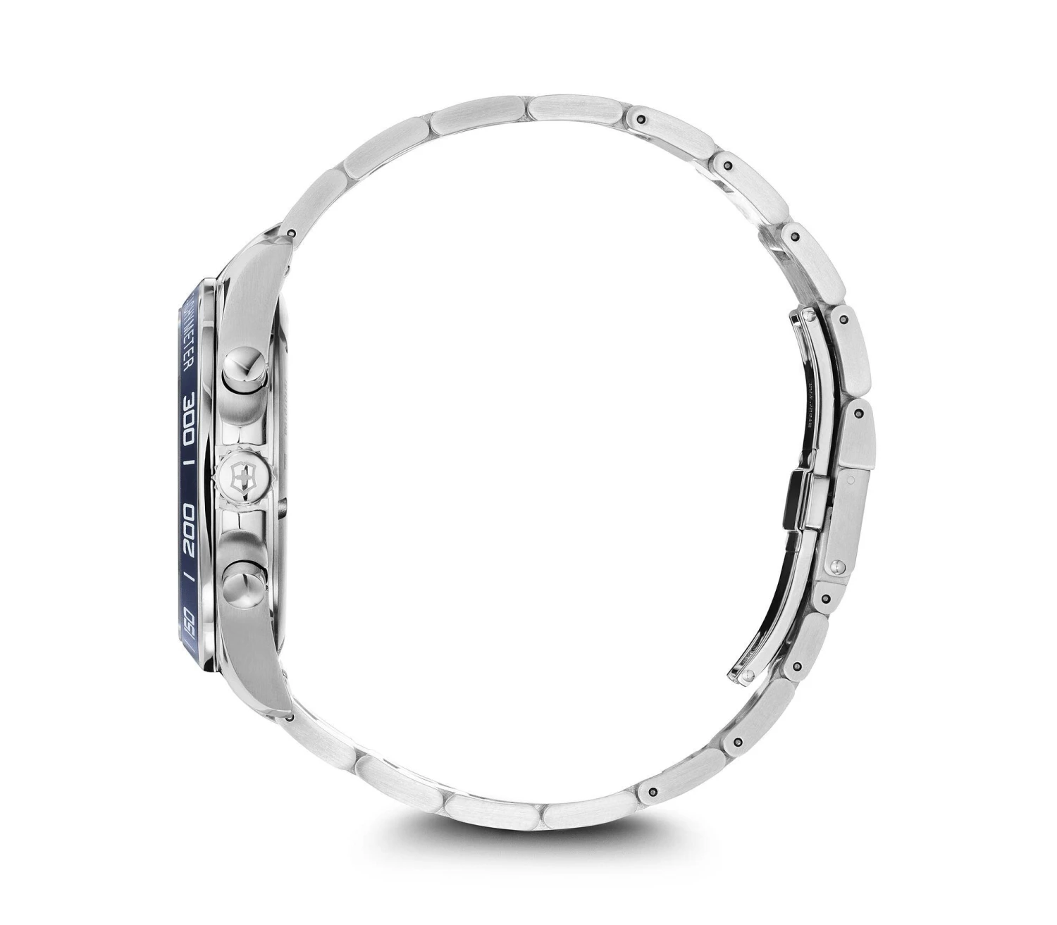 With its roots in the iconic Swiss Army knife design, this watch embraces the bold, the brave and the beautiful. Featuring luxurious colors, curved indexes, and easy-to-read numerals and hands, it shows the world where you’re headed. With enhanced SuperLuminova® details and a sleek stainless steel bracelet, it’s luxurious and works perfectly.