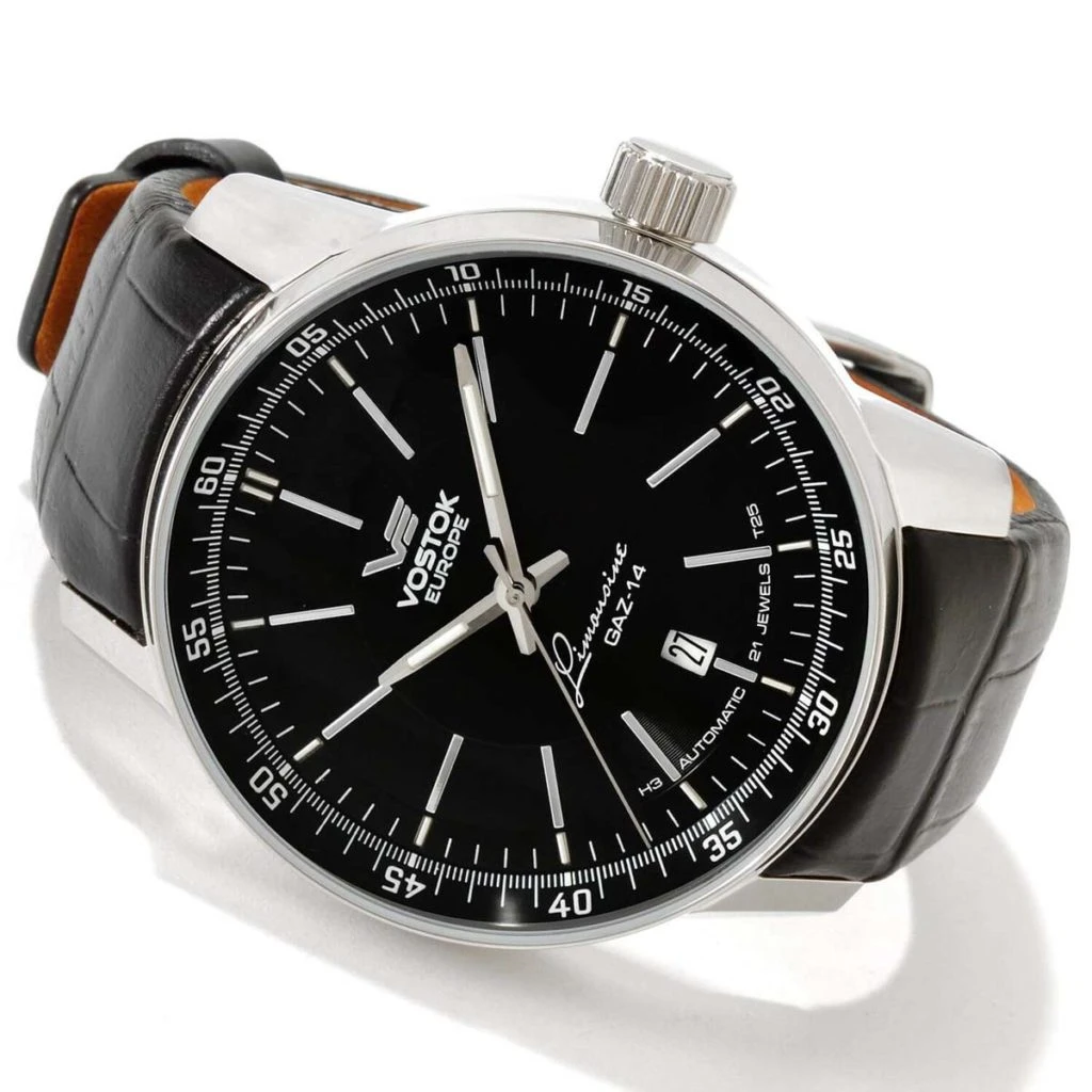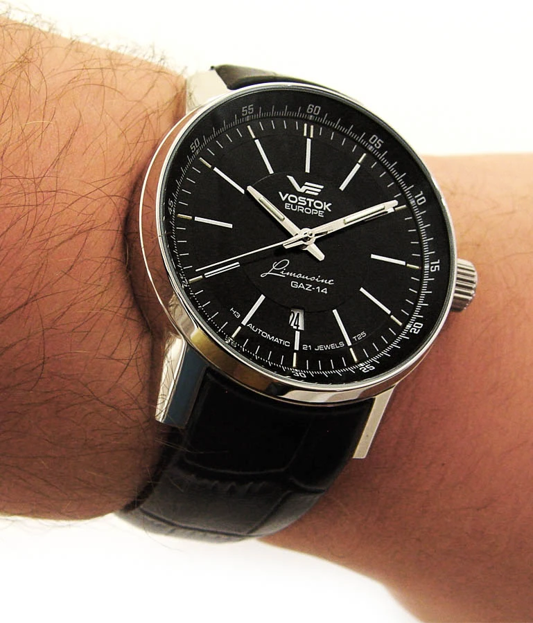 The VOSTOK-EUROPE Gaz 14 Limousine NH35A-5651137 deserves its status as the brand’s best-seller. With a smooth dial reminding us of contemporary watch designs, a Seiko automatic movement and a genuine leather strap gracefully styled, the Gaz 14 Limousine is all about a great timepiece with a rare price / quality ratio in Europe.