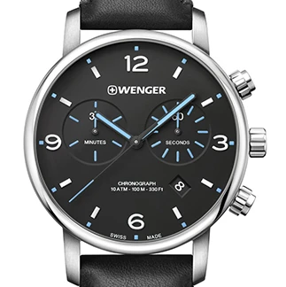 Grabbing a bag to catch a flight or holding on tight in a crowded train? The Urban Metropolitan Chrono timepieces are what the best-dressed wrists are wearing in today’s urban jungle. All of the Urban Metropolitan Chrono watches have a round 44-mm case, elegantly attached to the strap. The date display is positioned between four and five o’clock and four clearly marked numbers sit like reassuring compass points at perfectly measured three-hour intervals. These watches love to go to town on a design language that speaks volumes about the Wenger tradition for making mobility a beautiful thing.