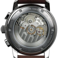 – The topstitched brown leather strap is hand sewn in Germany. It guarantees top quality for this part often overlooked by manufacturers.