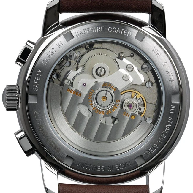 – On the back of the case, there is a transparent sapphire crystal, offering the wearer of the timepiece the pleasure of observing the movement in action. This one comes from the Japanese manufacture NE86  movement, for which we detail the main characteristics: