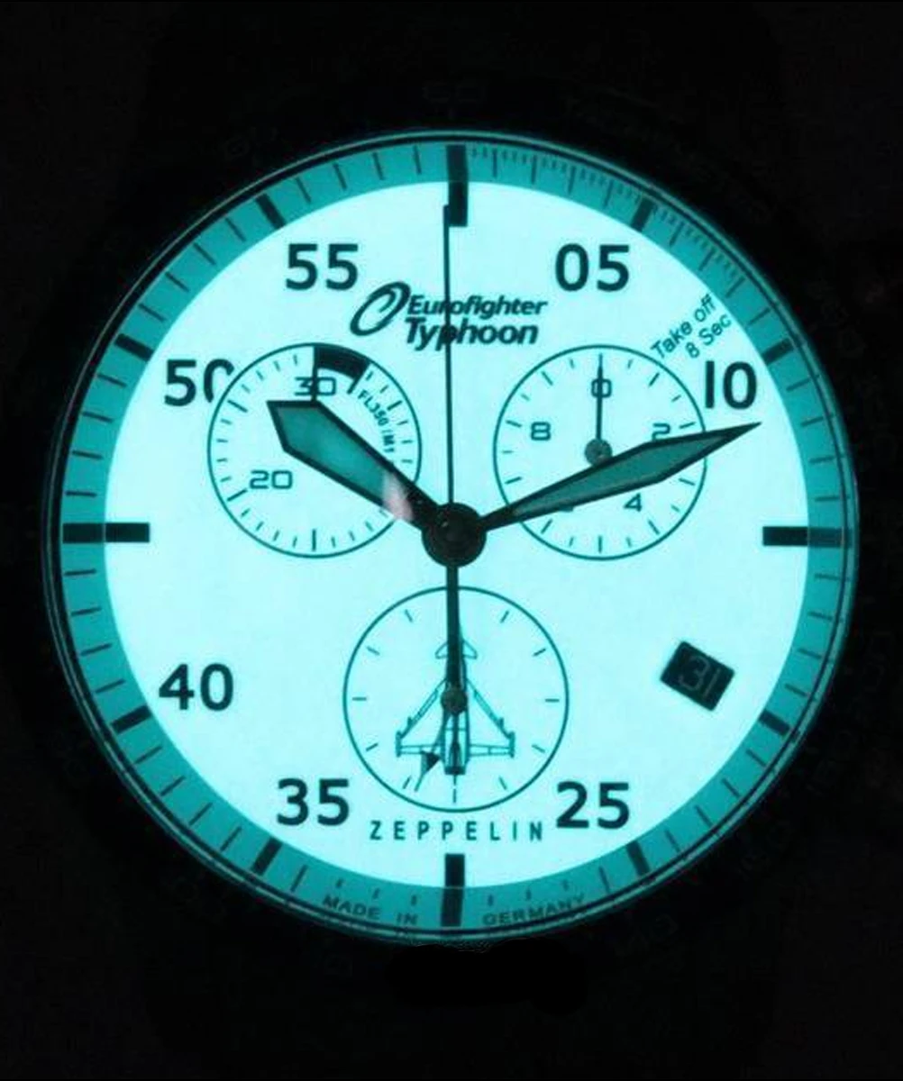 - Sporting a green dial, the Eurofighter Typhoon Chronograph model is equipped with a Mineral glass guaranteeing an original design.