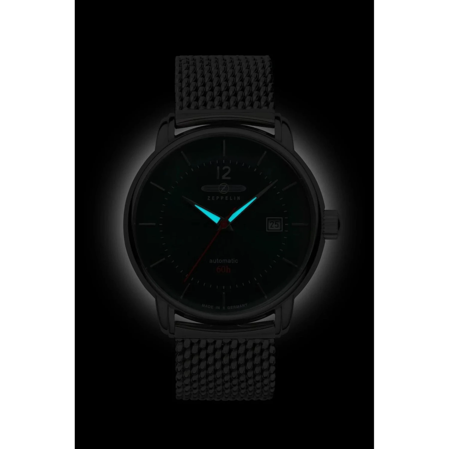 The Miyota 8215 movement, Japan Made, renowned for its robustness and longevity, equips the Zeppelin 8160M-4 model. Possessing 21 jewels, it has a 60-hour power reserve.
