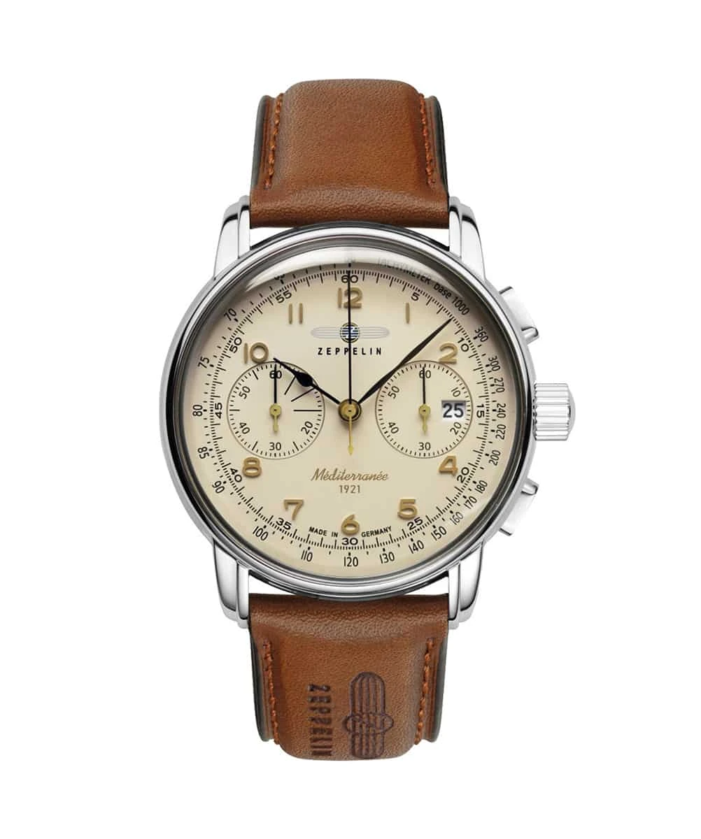 Featuring a beige dial, the Zeppelin Méditerranée model is equipped with a Mineral glass, ensuring an original design.