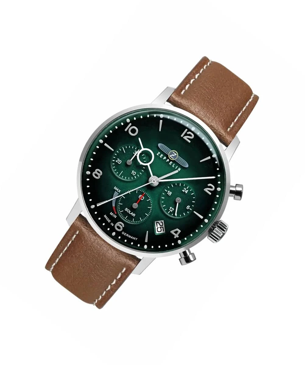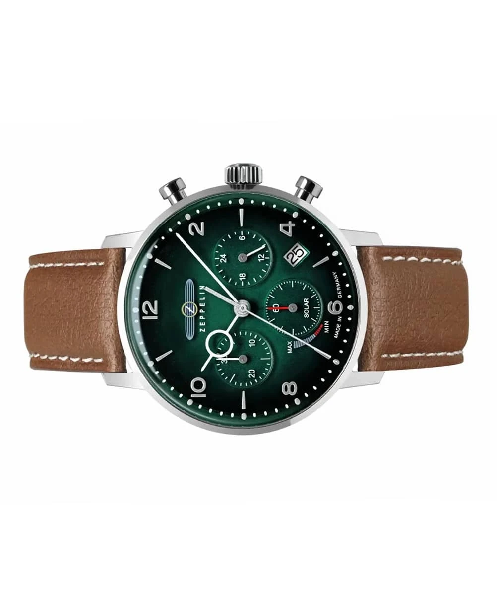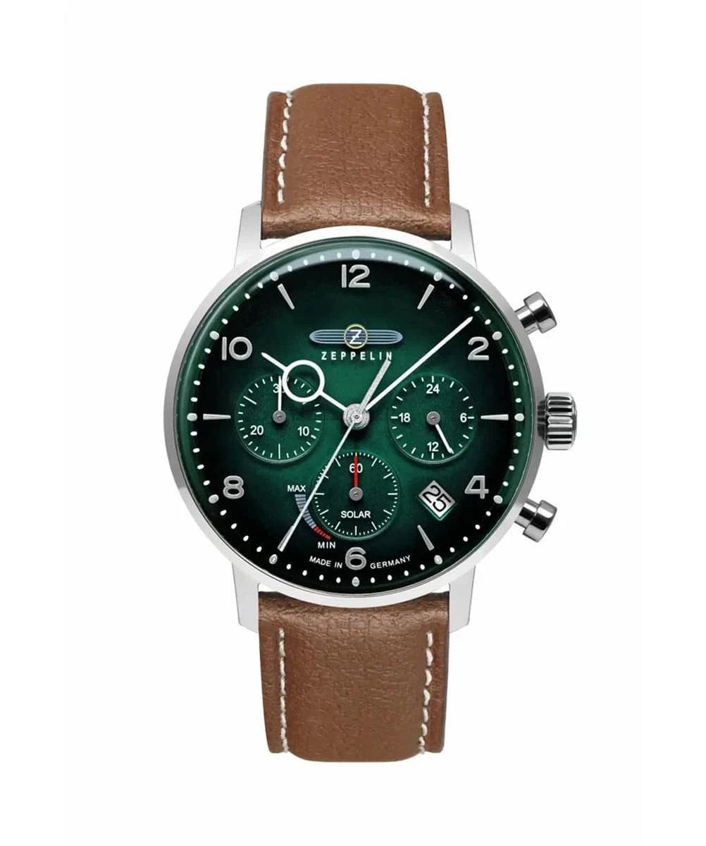 The Zeppelin LZ129 Hindenburg Solar Green 8086-4_n is an iconic model from the German House. Inspired by the founder’s first solid-shell airship, this timepiece embraces a highly successful Aviator style…